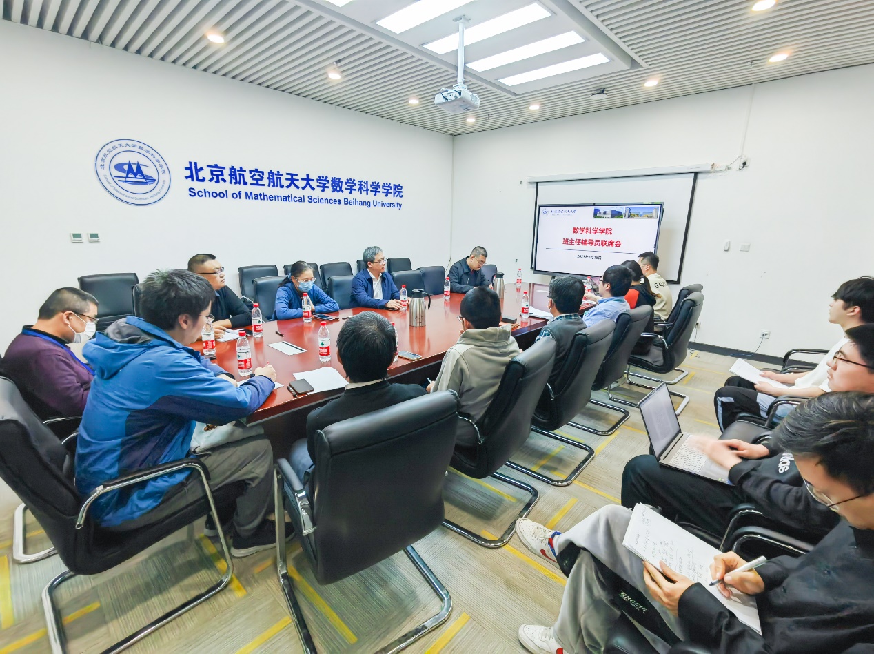 为进一步凝聚学院育人合力,增强学工线与教学线的协同,3月15日下午,beats365亚洲体育投注于沙河主楼E306召开2023年春季学期第一次班主任辅导员联席会。beats365亚洲体育投注院长、2020级华班强基班班主任韩德仁,本科教学副院长、2022级华班强基班班主任马声明,党委副书记曾煜,本科生班主任魏光美、张思容、王拥军、马健、戴蔚、沈良明,团委书记王铁成,本科教务曹安妮,本科生兼职辅导员郑健、许文哲、李非、王燕杰、张博洋参加会议。本次会议由学院党委副书记曾煜主持。