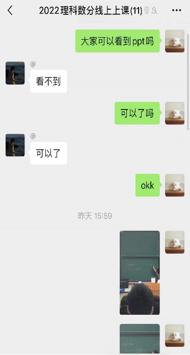 为了保障线上线下同时授课的顺利实现,课程组开展教学需求调研,以充分了解学生线上学习需求。经调研,课程组发现学生对线上授课存在以下两点困惑:一、在教室使用腾讯会议能否保证教学质量(如会议的流畅度、声音的收录效果等);二、线上学生能否看清板书。为解决学生的困惑,课程组针对每位教师的大班另建线上学生群,同时让助教参与教学。为了保证教学效果,课程组对助教进行了系统化培训,带领助教熟悉课堂教学的流程,如开机、电脑联网和使用腾讯会议等。课堂上,助教负责监控线上学生的学习情况,保证线上的每一位学生都能听得清、看得见。同时助教还负责对黑板进行拍照,及时将课堂素材上传给线上学生,尽量做到线上教学与教室授课同步。课后还将录制的视频发到北航云盘,方便学生课后学习复习。