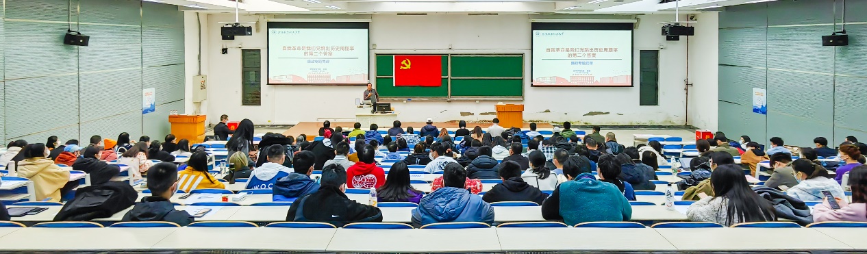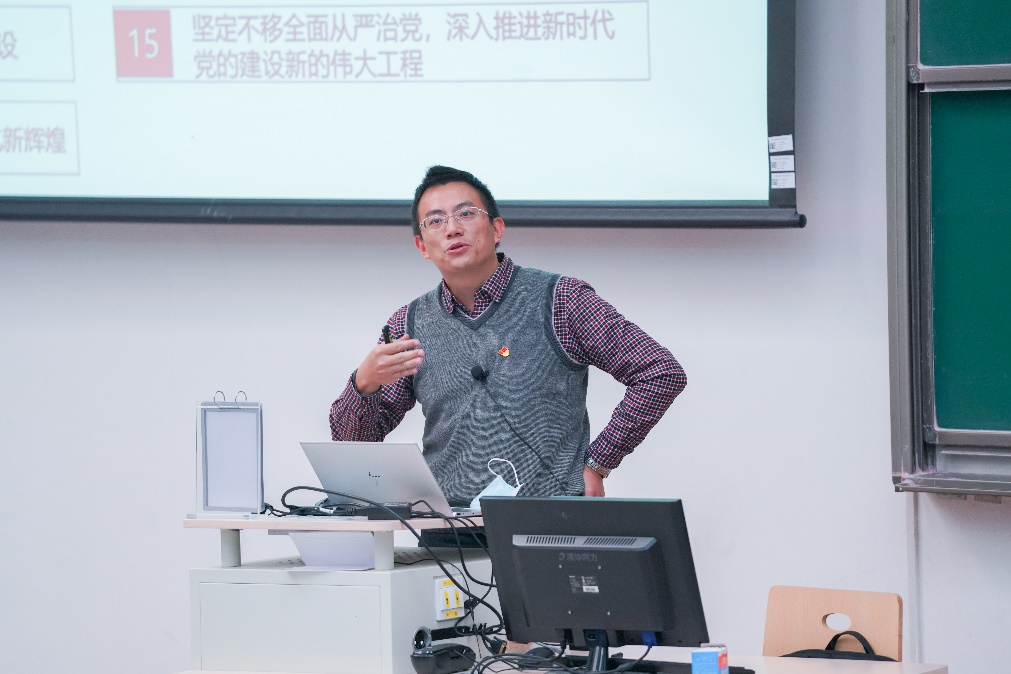 11月16日下午,数学学院党委书记袁星在J0-001为学院全体党员讲授“自我革命是我们党跳出历史周期率的第二个答案”专题党课,组织学院深入学习宣传贯彻落实党的二十大精神。