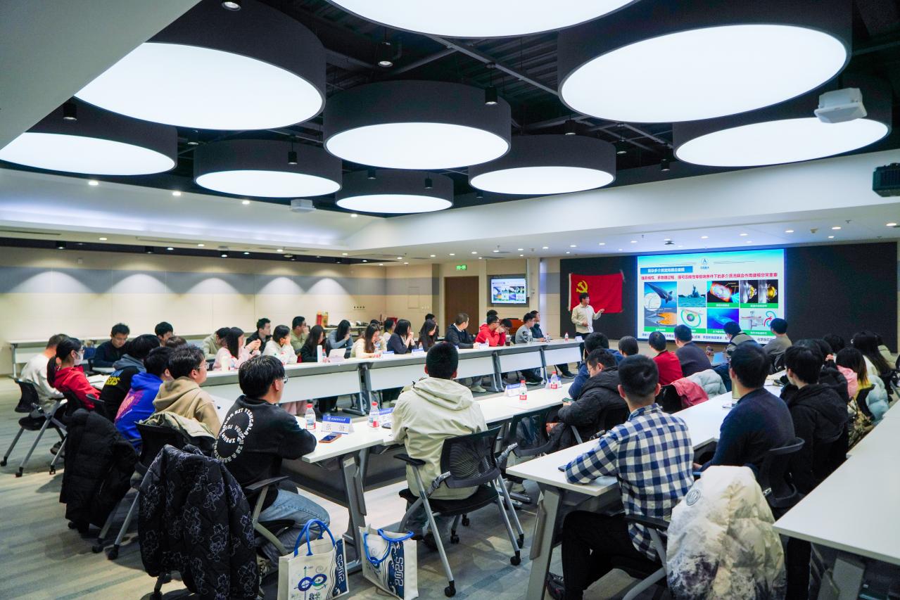 在学术交流环节,科学中心党支部成员冯亦葳作专题报告,系统阐述人工智能在航天气动研究中的前沿应用,涵盖“AI+物理模型”“AI+数值计算”与“AI+优化设计”等多个方向,介绍了智能流场启动子、CFD快速预测方法等创新成果,并对航天气动大模型、量子计算与CFD结合等未来发展趋势进行展望。与会师生围绕相关领域关键技术、学科交叉路径等展开热烈探讨。