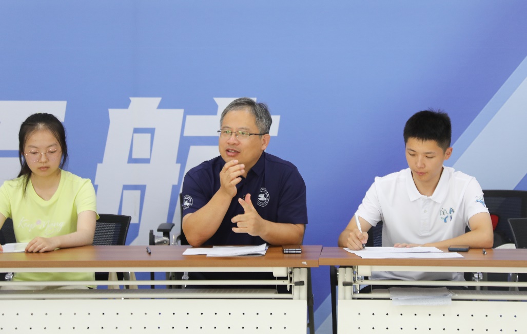 院长韩德仁在交流分享会上讲话。韩德仁表示,希望各位同学充分认识数学的重要性,认清数学本质,用数学思维涵养品格;希望各位同学以数学为翼,把个人成长融入国家发展之中,幸福生活、快乐成长。