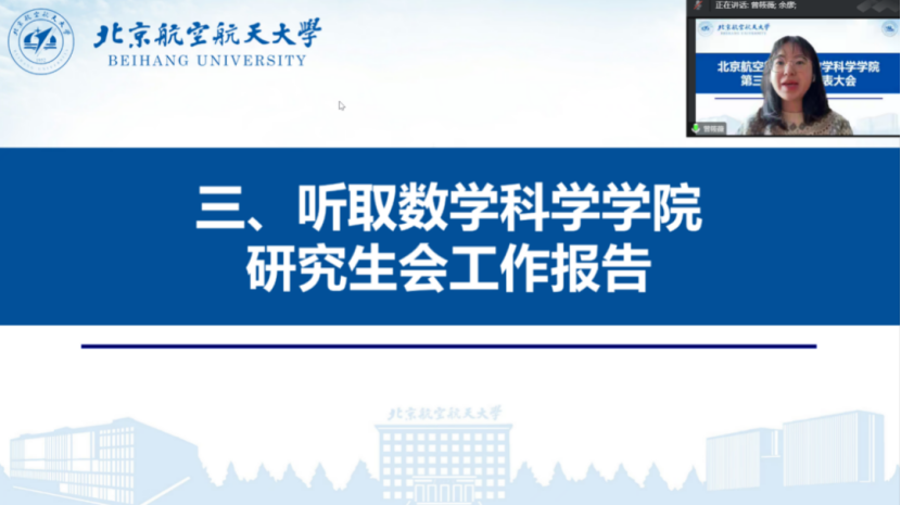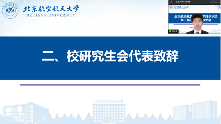 12月23日,beats365亚洲体育投注第三届研究生代表大会于线上召开。学院团委书记王铁成、2022级研究生辅导员董承霖,校研究生会代表冯长春,以及beats365亚洲体育投注硕博各年级30位研究生代表参加本次会议,会议由研究生代表余廖主持。