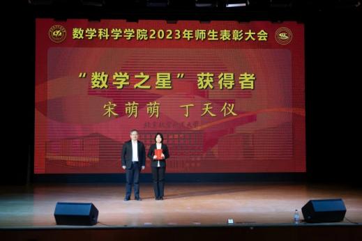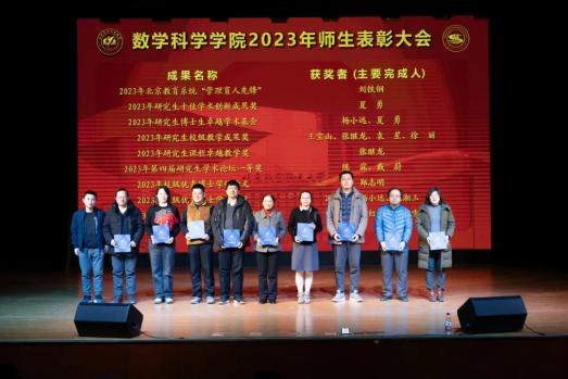 大会为2023年获得“最美数学人”、科研类奖项和教学类奖项的教师代表和获得“数学之星”系列奖项的学生代表颁奖。
