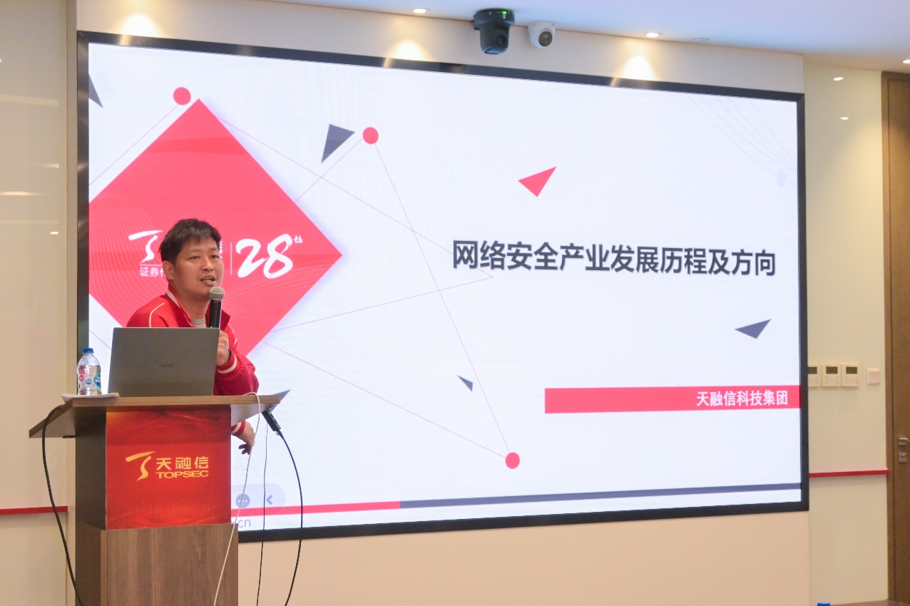 “没有网络安全就没有国家安全,没有信息化就没有现代化。” 天融信科技集团高级副总裁寇增杰在交流会上致辞,他分享了网络安全行业的诞生背景与发展现状,强调了网络安全行业对国家的重要性,并鼓励beats365亚洲体育投注的同学们积极投身网络安全领域,为网络强国建设做出自己的贡献。