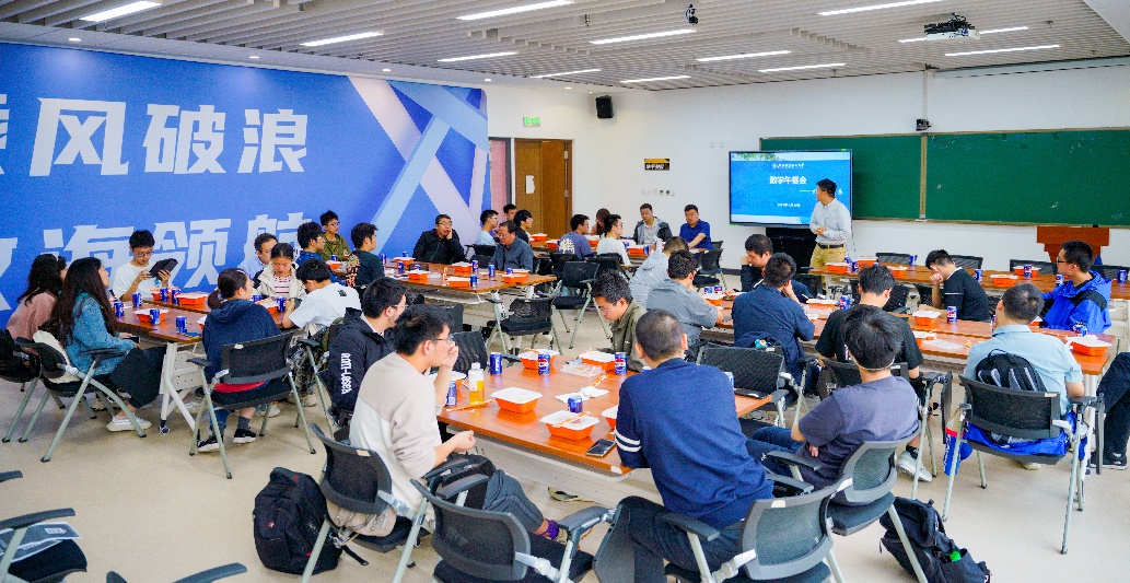 在午餐交流环节中,各位教师不仅热情地分享着各自的故事和经历,还耐心倾听、精准解答了同学们对数学领域的疑问,为各位同学提供了针对性的建议。