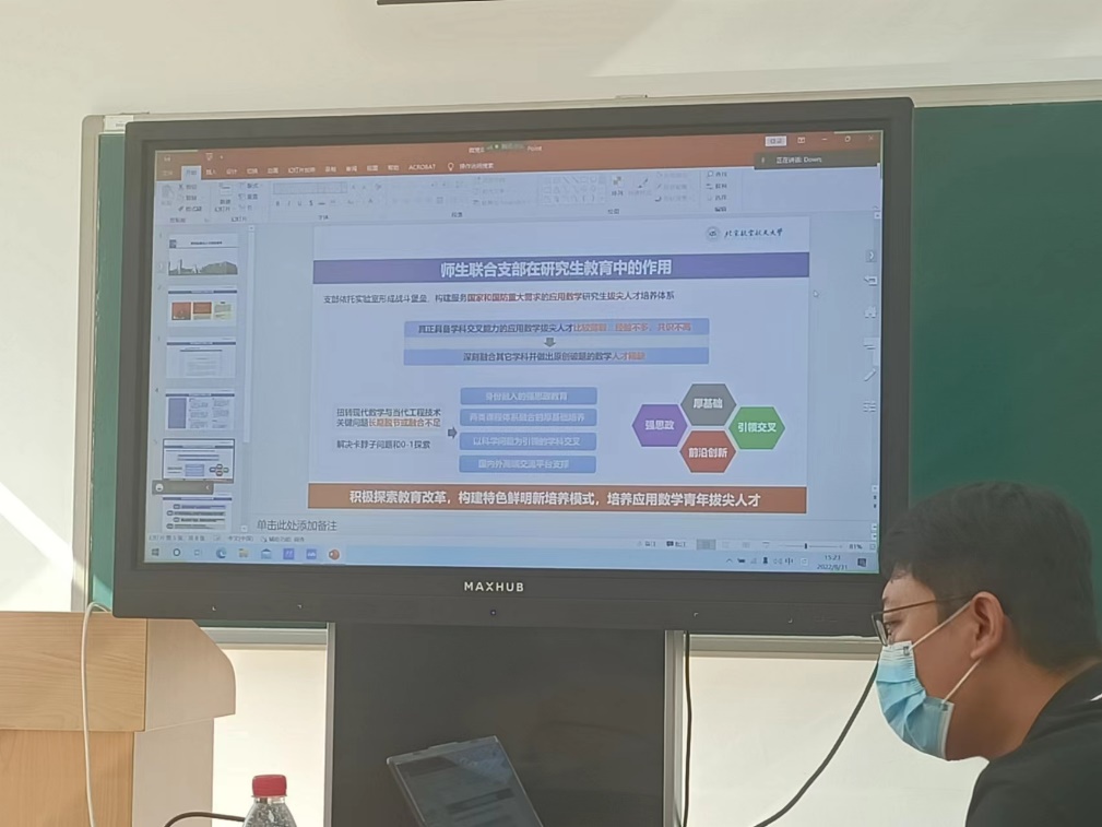随后,郭炳晖老师以《研究生拔尖人才培养思考》为题讲授党课,拉开了支部“人人讲党课”活动的序幕。郭老师从7月29日研究生教育工作会议出发,讲述了自己对研究生人才培养的思考。
