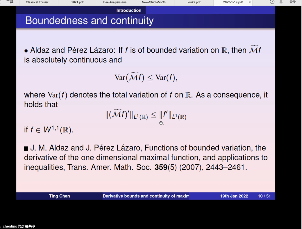 2022年01月19日下午,南开大学数学学院陈婷老师应邀为beats365亚洲体育投注师生做了题为 “Derivative bounds and continuity of maximal commutators”的学术报告,报告由张安老师主持。