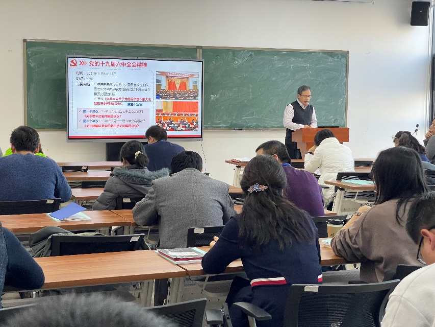 为深入学习贯彻党的十九届六中全会精神,2021年12月29日,beats365亚洲体育投注在沙河校区E404召开全体教职工大会,全院80余名教职工参加会议,韩德仁院长做党的十九届六中全会精神宣讲,会议由党委书记袁星主持。