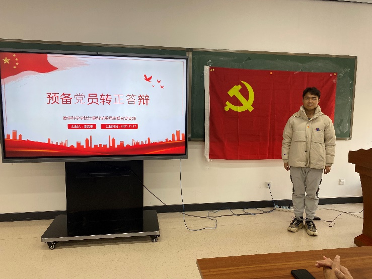 首先,由李奕孝同志汇报预备期一年中的思想、学习、工作以及生活上的感悟、收获及表现等情况。入党介绍人对其基本情况以及预备期的表现做了介绍,支部书记孙玉泉代表党支部委员会报告了李奕孝同志预备期间的教育考察情况。党支部其他成员分别对其作出评价,说明李奕孝同志在这一年预备期内存在的优缺点,以及还有待改善和提高的地方,并表达是否建议其转为正式党员。最后党支部进行了无记名投票表决,表决结果为全票赞成预备党员李奕孝同志转为正式党员。李奕孝同志进行了表态发言。