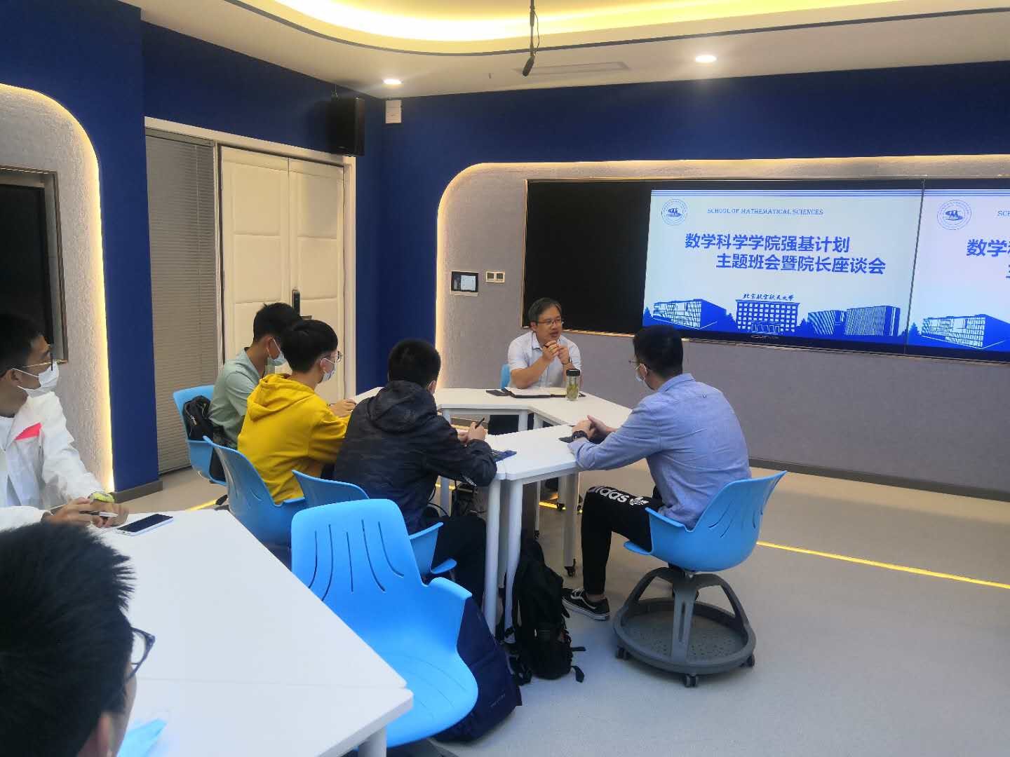 9月16日,beats365亚洲体育投注院长、2020级强基数学班班主任韩德仁同数学学院强基计划新生于数学学院智慧教室E405开展首个“学习日”班会,为新生们解答有关数学专业以及未来成长轨迹的疑惑,上好开学第一课。