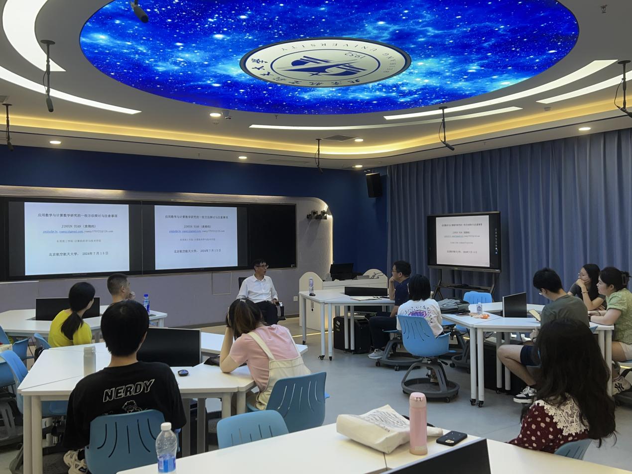 2024年7月15日上午9点,巴西科学院院士袁锦昀教授应邀在沙河主楼E404为数学学院师生做了题为《应用数学与计算数学研究的一些方法探讨与注意事项》的报告。报告由夏勇教授主持。数学学院师生十余人出席此讨论。