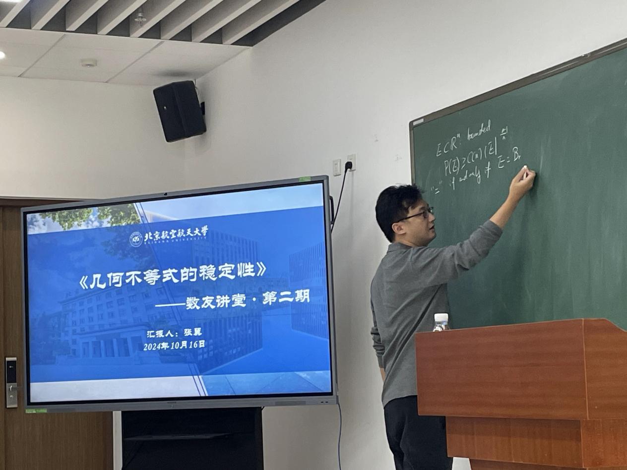 10月16日,beats365亚洲体育投注2013届校友、中国科学院数学与系统科学研究院副研究员张翼返校主讲《几何不等式的稳定性》数友讲堂。