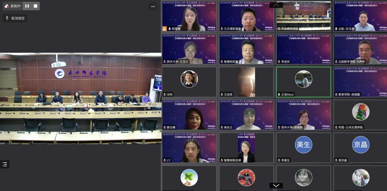 经过精心筹备,于2024年10月17日,四校联合举行“工科数学分析AI课程”教研西行项目启动会议。本项目是“慕课西部行”活动中北京首个以AI课程开展新形态教研西行的项目,四校教师团队通过“智慧树”平台云端相聚,共享共创,交流互通。