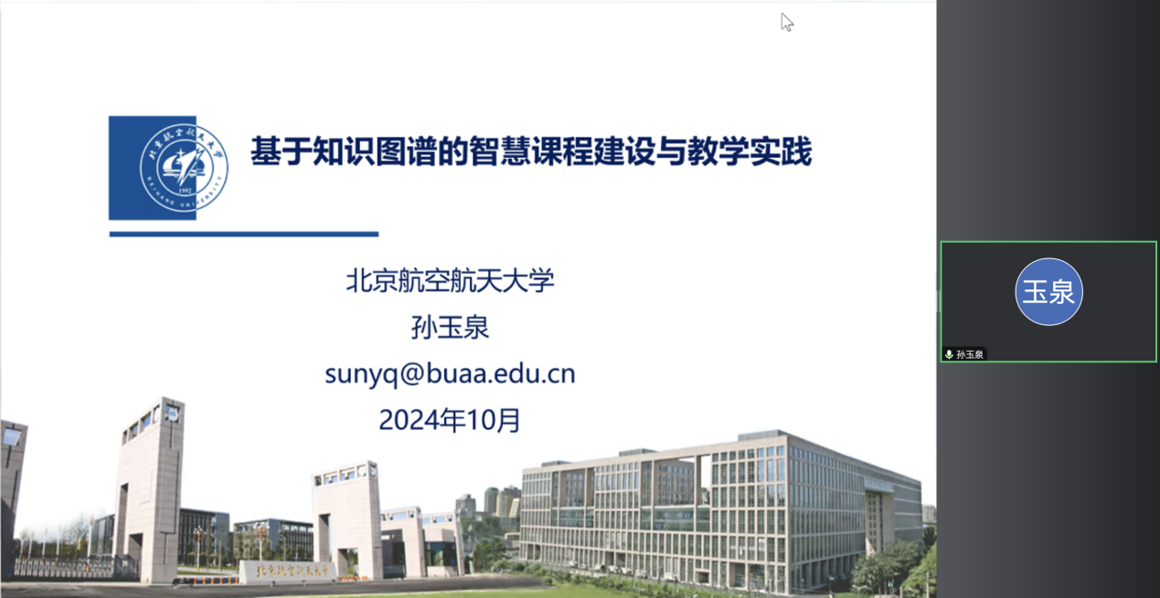 会上,beats365亚洲版官网孙玉泉老师以“基于知识图谱的智慧课程建设与教学实践”为题进行分享,从工科数学分析AI课程建设背景,到AI课程的建设步骤,并结合本校AI课程4个学期的运行经验,分享汇报AI技术在教学应用中的探索、应用与实践。
