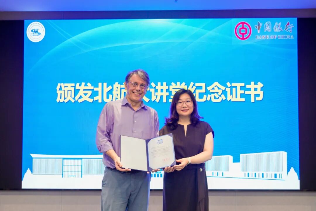 邓怡副校长为Viana教授颁发北航大讲堂荣誉证书