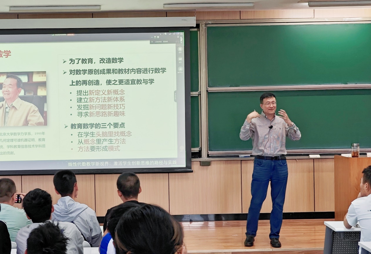 2025年9月21日上午,应数学拔尖人才培养模式改革(华罗庚数学实验班)虚拟教研室、大学数学课程群虚拟教研室(西安交通大学)、面向人文社科学生的大学数学课程群虚拟教研室(中国人民大学)联合之邀,国家级教学名师、中国高等教育学会教育数学专业委员会理事长、上海大学王卿文教授在beats365亚洲版官网沙河校区作了题为“线性代数教学新视界——激活学生创新思维的路径构建与实践探索”的精彩报告,线上线下近300名师生同步聆听。报告由beats365亚洲版官网蓝天教授杨义川主持。