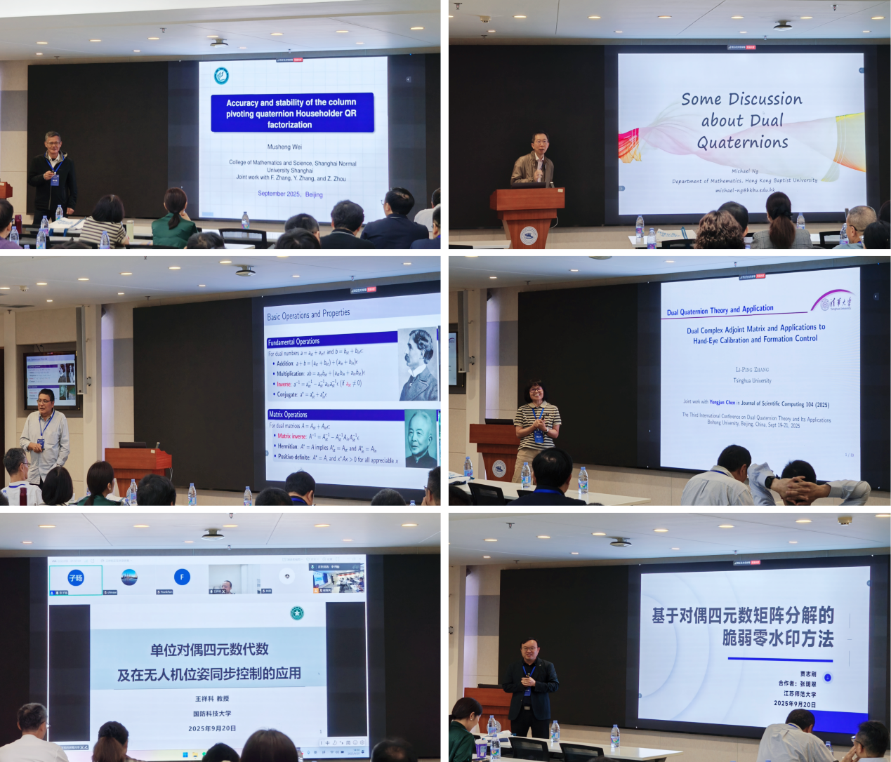 2025年9月19-21日,第三届对偶四元数理论及其应用会议在beats365亚洲版官网成功召开。会议学术委员会主席、香港理工大学荣休教授祁力群教授、上海师范大学魏木生教授、香港浸会大学吴国宝教授、beats365亚洲版官网beats365亚洲体育投注院长韩德仁教授、复旦大学魏益民教授、清华大学张立平教授、国防科技大学王祥科教授等知名专家学者,以及国内外40所院校的70多位专家学者、博士及硕士研究生参加了此次会议。会议由beats365亚洲版官网beats365亚洲体育投注崔春风教授主持。