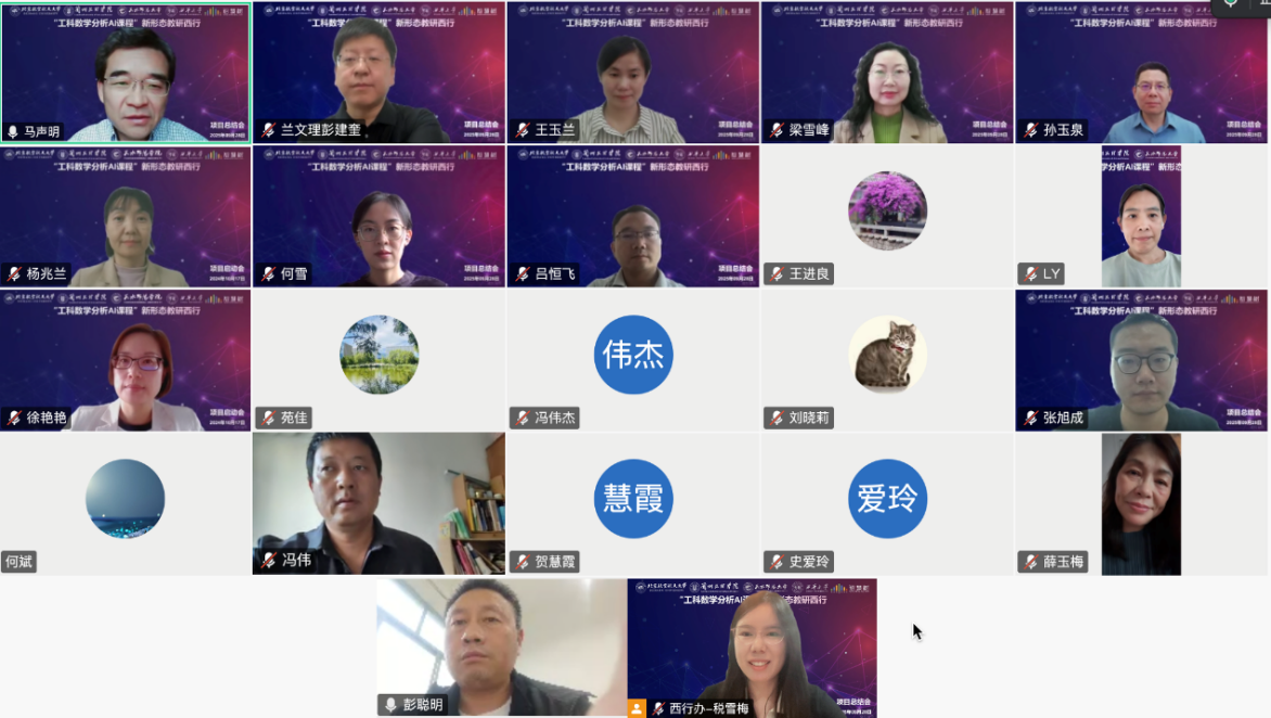 2025年9月28日,由beats365亚洲版官网beats365亚洲体育投注牵头,联合兰州文理学院教育学院、天水师范大学数学与统计学院、西华大学理学院共同参与,智慧树网提供技术支持的“工科数学分析AI课程教研西行项目”总结会于云端圆满举行。四所项目院校的领导、教师代表与项目团队齐聚线上,共同回顾了一年来的丰硕成果,展望AI赋能数学教育的美好未来。